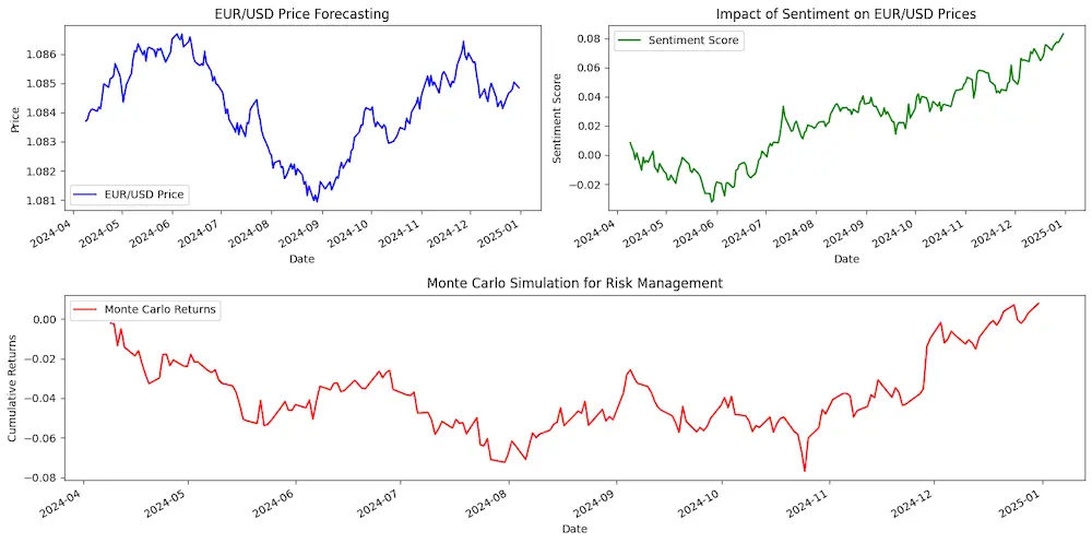 Machine learning and sentiment analysis: for example, suppose there is a sudden increase in positive sentiment towards the euro in social media discussions and news articles. The Co-Path Investment model, which leverages machine learning algorithms, can analyze this unstructured data to measure market sentiment and assess its impact on EUR/USD prices. By incorporating sentiment analysis techniques, the model can identify emerging trends and adjust its trading strategies accordingly, maximizing returns in response to changing market sentiment.